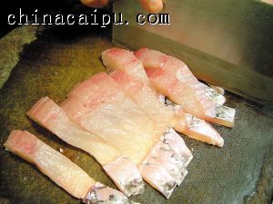 1、先给鲩鱼剔去骨,再加盐腌一下,可增添鱼肉的鲜甜之味,又避免成菜味道太淡。