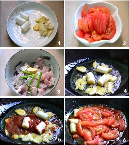 草鱼 500克、番茄400克、番茄汁(地扪牌)3汤匙、生姜1块、大葱半根、大蒜3瓣、白胡椒粉半茶匙、盐适量、白芝麻1汤匙、黄酒1茶匙、鸡蛋清1个、香葱段数根、花生油适量
