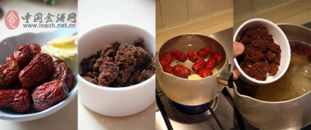 2、取一只小锅,冷水时将大枣和姜片放入,小火煮至沸腾;