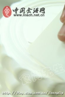 注:刮蛋糕侧面时,刮片应垂直于转台并与蛋糕侧面张开35°左右,将刮片贴与蛋糕表面直至光滑。