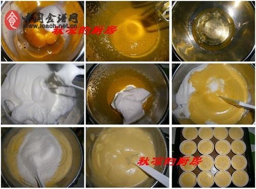 1.法式分蛋海绵蛋糕的配方,液体量较少,最后可利用橡皮刮刀将粉料压入蛋白内的方法,就可以较容易拌和均匀;