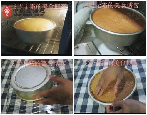 10,表面上色后而且蛋糕基本回缩完毕,取出来。