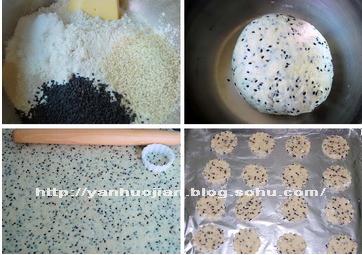 材料 : 水 80g小苏打粉 2g盐 2g低筋粉 180g砂糖 10g 速效酵母 1g无盐黄油 30g (黄油要保持固态哦)白芝麻 16g黑芝麻 16g