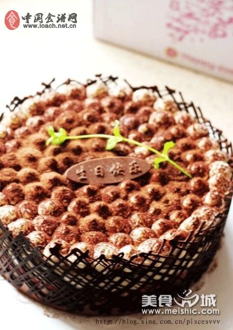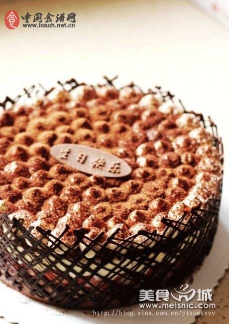 7、用粉筛筛上一层可可粉即可。