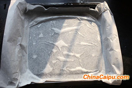 1.烤盘上涂上水,垫上烘焙纸。纸要高于烤盘。