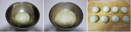1.这个面团的黄油量比普通面包面团要多,所以揉进黄油的时候挺费力的。我是用面包机,第一次做的时候忙别的事儿,所以没在意面包机揉的状态。第二次放进黄油后我就在边上看着,诶哟那个费劲儿哟!搅了半天好像也没什么变化,黄油面团还是不能融合到一起,我甚至一度怀疑是不是面包机要玩儿完了好在后来光滑的面团还是出现了~所以这个版本唯一麻烦的就是揉面,不过交给机器让它折腾去吧!