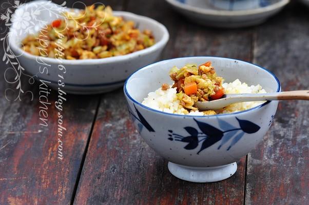 这种肉菜碎最棒的吃法就是用勺子将其拌入饭中,香极了!