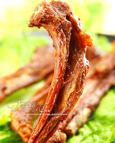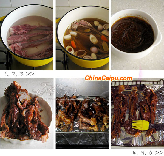 4:将卤好的羊排表面刷上调好的酱,再刷一层油。