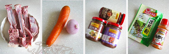 羊排400-500克、胡萝卜1小根、洋葱半个、大葱5克、姜5克。