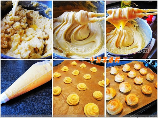 4、关于鸡蛋的份量:当煮沸水分的时候,当搅拌面糊的时候,因为火力和时间的不一致,水分的挥发量也不一致。同时,不同的面粉的吸水性不一致,因此也影响到鸡蛋的使用量。相同分量的鸡蛋,到了每个人手里,制作出来的面糊干湿程度也可能是不一样的。因此配方里的鸡蛋,不一定要全部加入,必须靠酌情添加,使面糊达到最佳干湿程度。