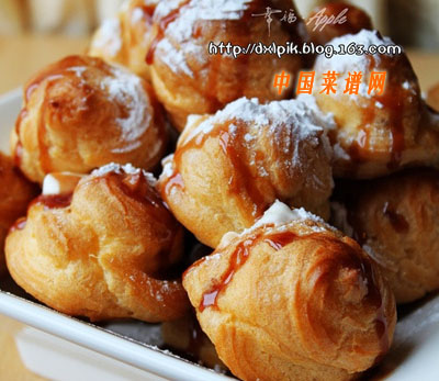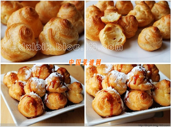 9、关于填馅:泡芙的外皮有着酥脆的口感,只有在吃之前才会填上馅料,最好是现吃现填。如果过早填入馅料,外皮会吸收馅料里的水分而变得湿软。