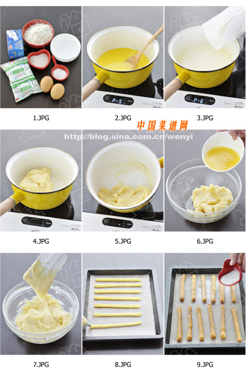 **这个泡芙条最好使用小口径的星形花嘴,大口径的挤出来的条不美观,且成品不够酥脆。