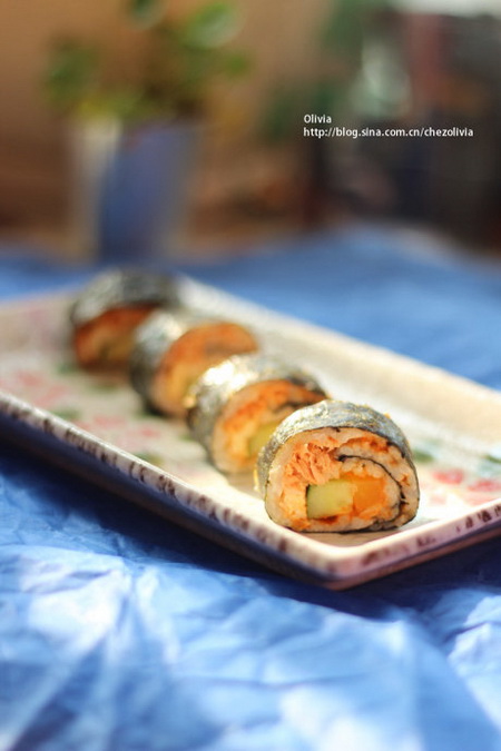 金枪鱼紫菜包饭做法:
