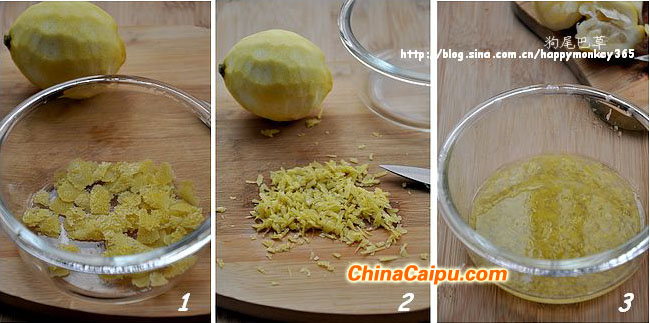 柠檬皮只需要最表面黄色的那一层,是芬芳的。尽量不要混上白色内膜部分,那部分很苦。