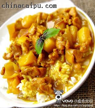 7、浓郁的咖喱浇到热米饭上,真是丰富十足的美味