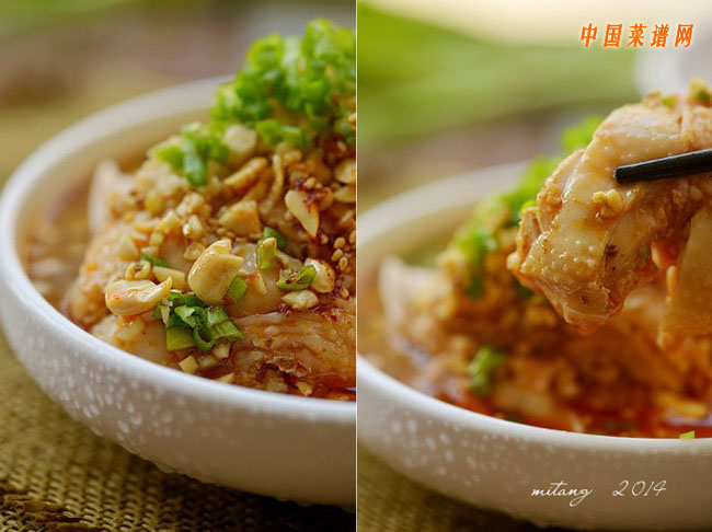 料酒1勺、辣椒油2勺、鸡精1勺、盐适量、熟芝麻适量、(兑成碗汁,加适量煮鸡的汤调匀)