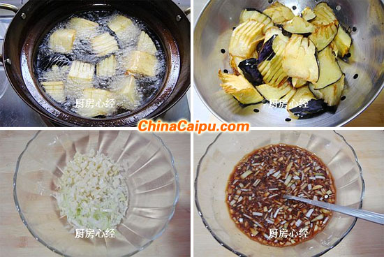 5.茄子要立即下油锅,8成热时,茄子基本不吸油