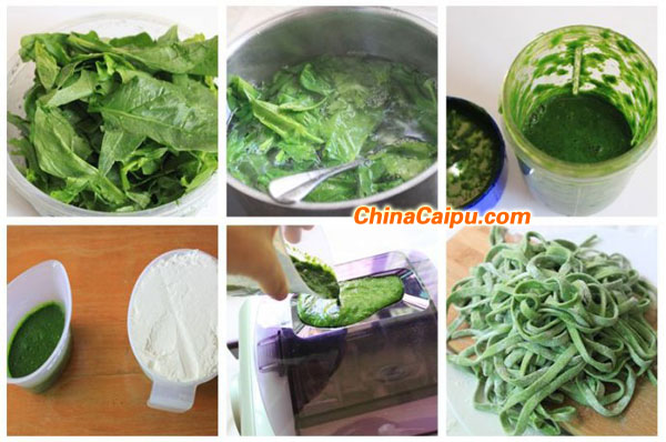 2 菠菜汁的浓稠度自己可以掌握,越浓稠,面条颜色越深,但是如果特别浓稠的话,菠菜汁要略为多点,要么面条偏干,因为菠菜汁密度降低