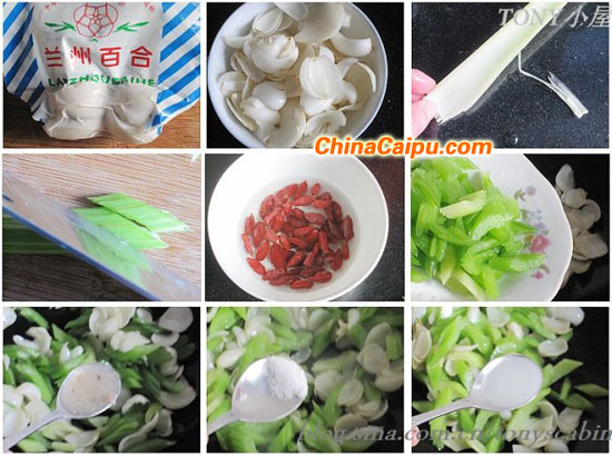 1.做这道菜,西芹百合都不能炒老了,否则就不好吃了,解决的办法就是先焯水,这样只要在锅里翻炒几下加点调料即可;